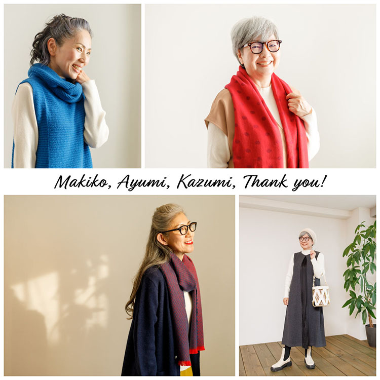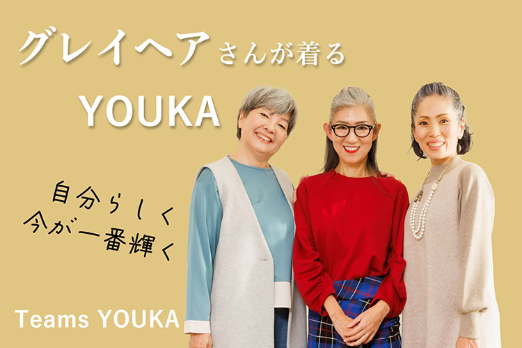 今回、Teams YOUKAのAyumiさん、Kazumiさん、Makikoさんをお招きし、グレイヘアが引き立つスタイリングをYOUKAのお洋服でコーディネートさせていただきました。グレイヘアという選択をされた3人のお話は、今の自分を自分らしく楽しむヒントが沢山ありました。