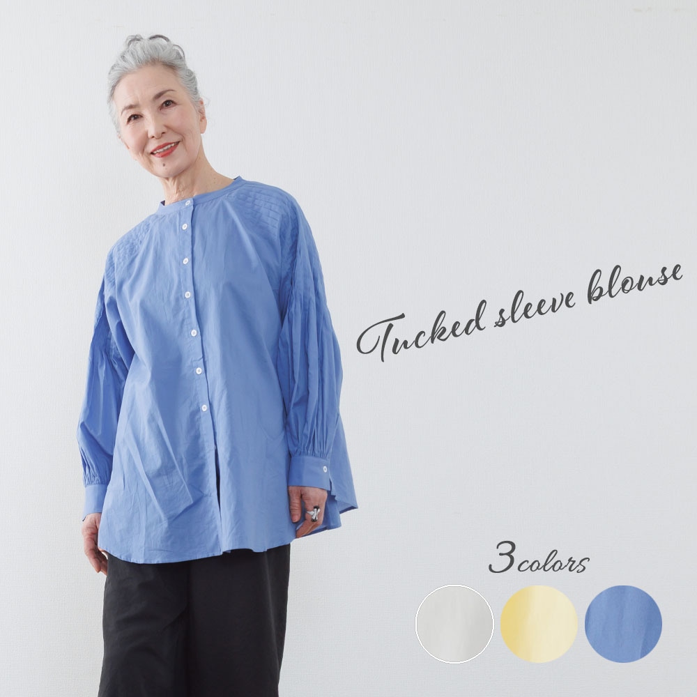 ・裾が広がらないブラウスを前開きで着てIラインを強調