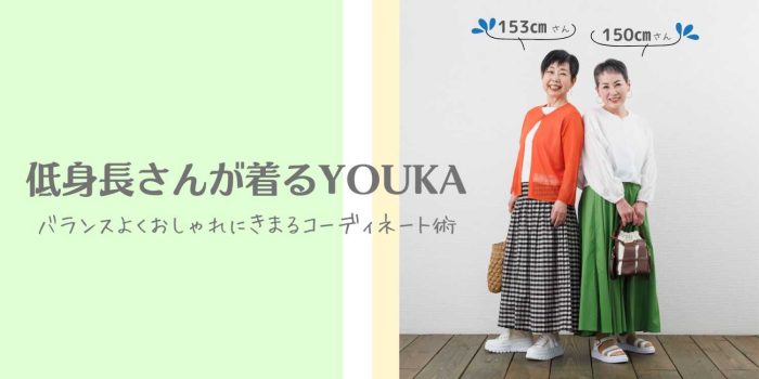 実際に150cm台のTeams YOUKAのメンバーがYOUKAのお洋服を着用し、バランスの良い着こなしのポイントやスタイルアップのコツを実践。リアルな着こなし例を交えてお届けします♪