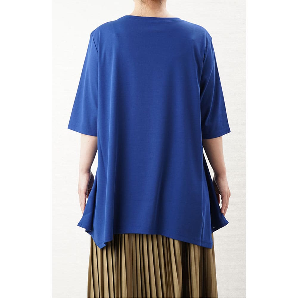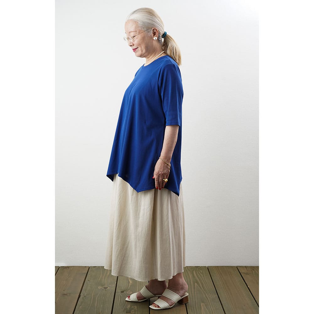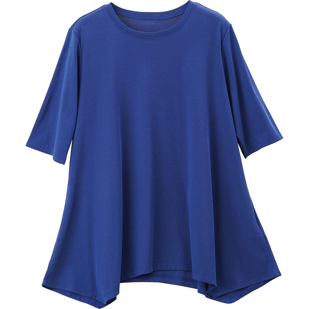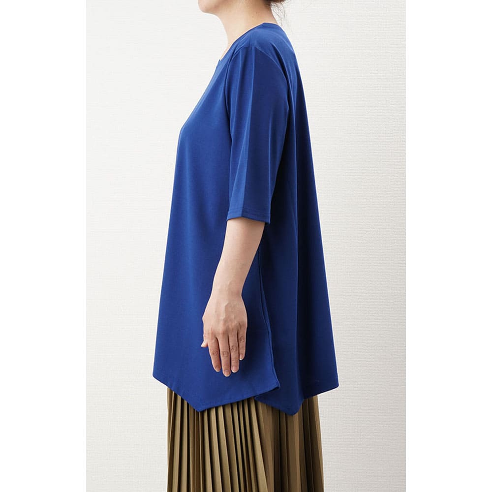 フレアに拡がる裾裾デザインがお洒落なチュニックTシャツ Tシャツ感覚で気軽に着れて上手に体型をカバーできる大人の夏の普段着にピッタリです2上品で涼しい生地を使用
