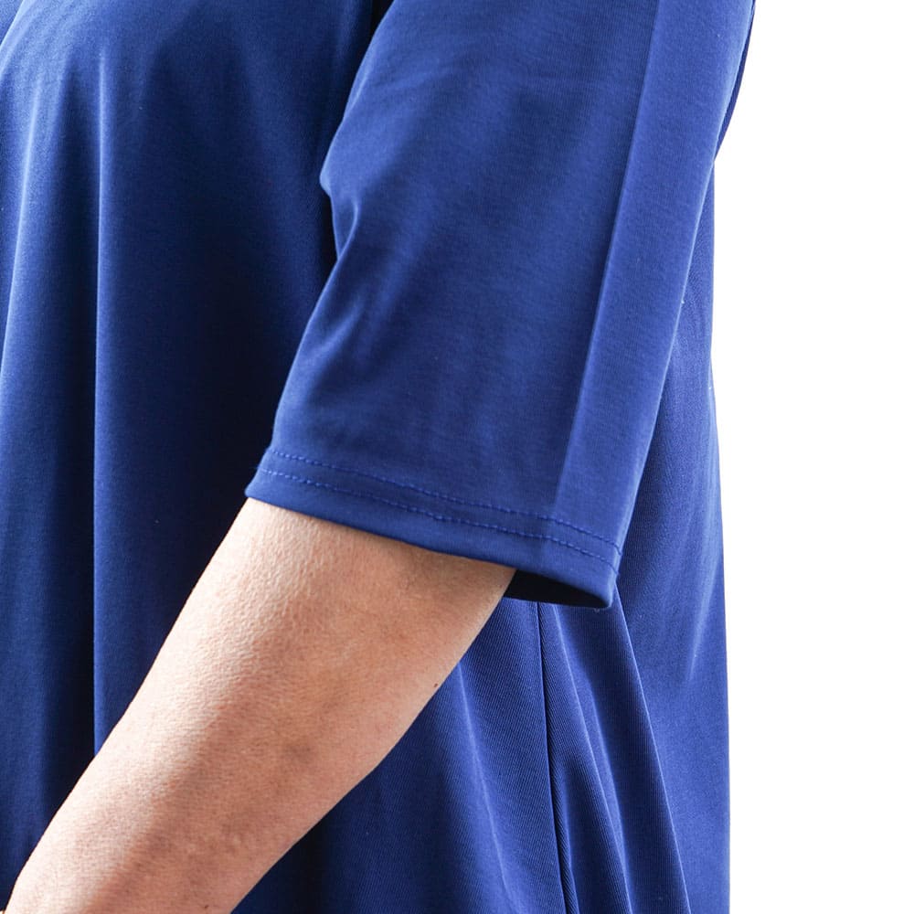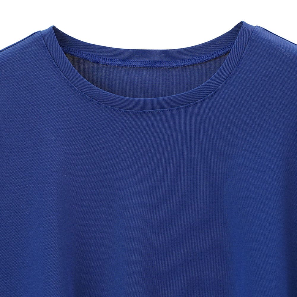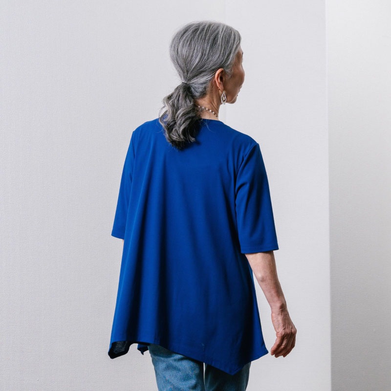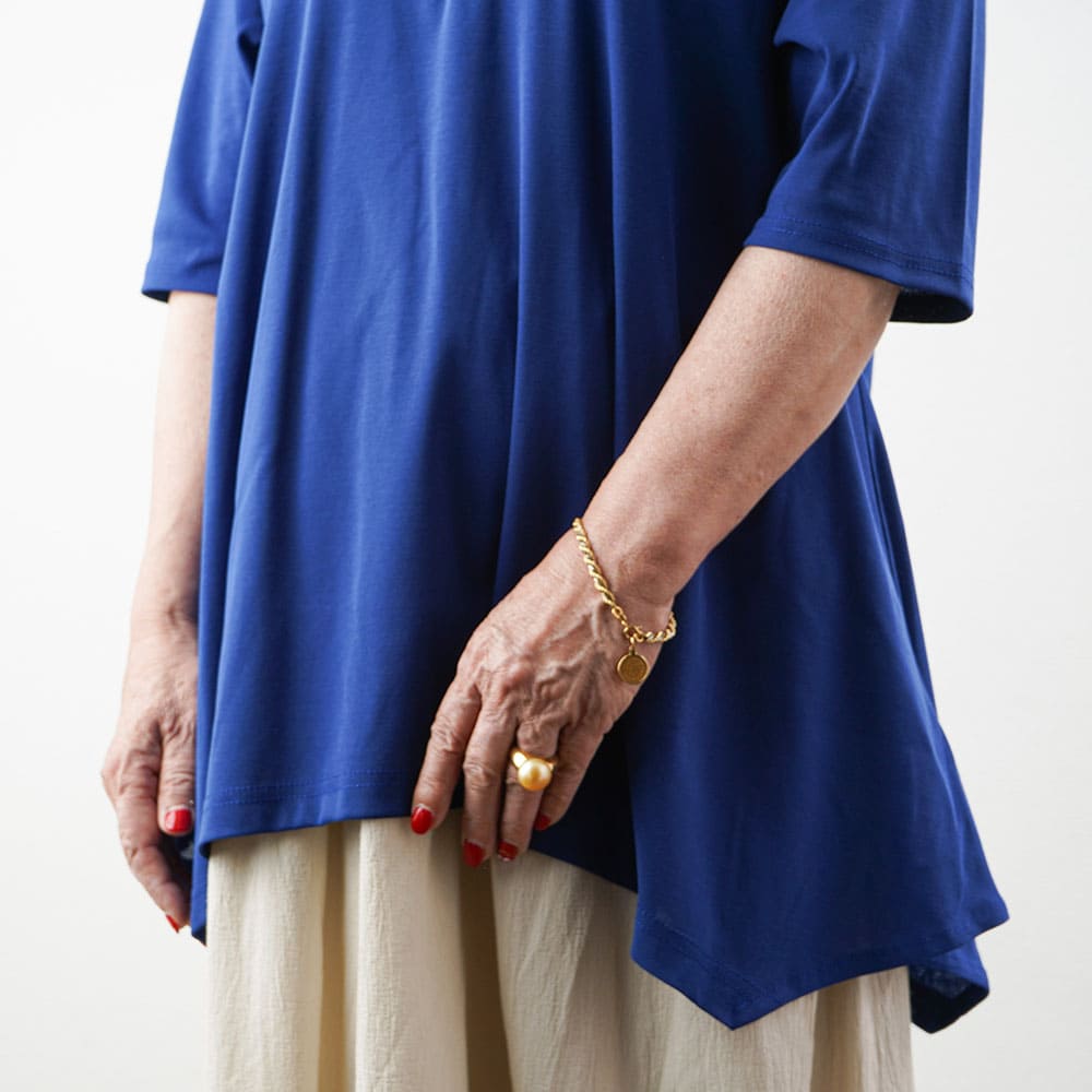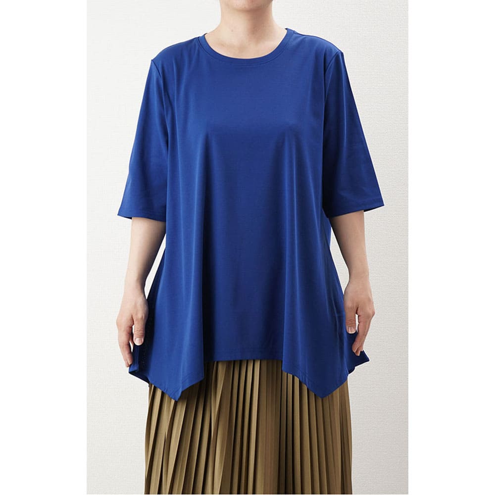 フレアに拡がる裾裾デザインがお洒落なチュニックTシャツ Tシャツ感覚で気軽に着れて上手に体型をカバーできる大人の夏の普段着にピッタリです2上品で涼しい生地を使用
