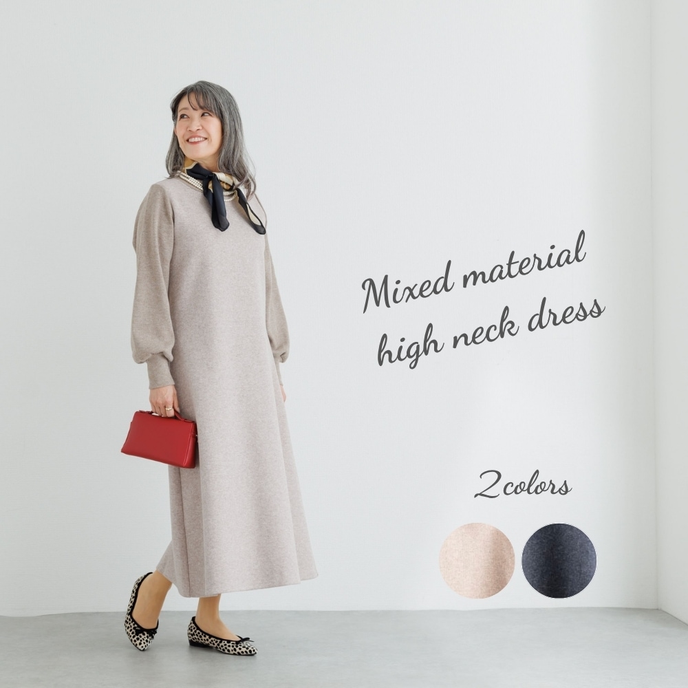 (YOUKAヨウカ) 異素材ハイネックワンピース ※ギフト対応不可商品