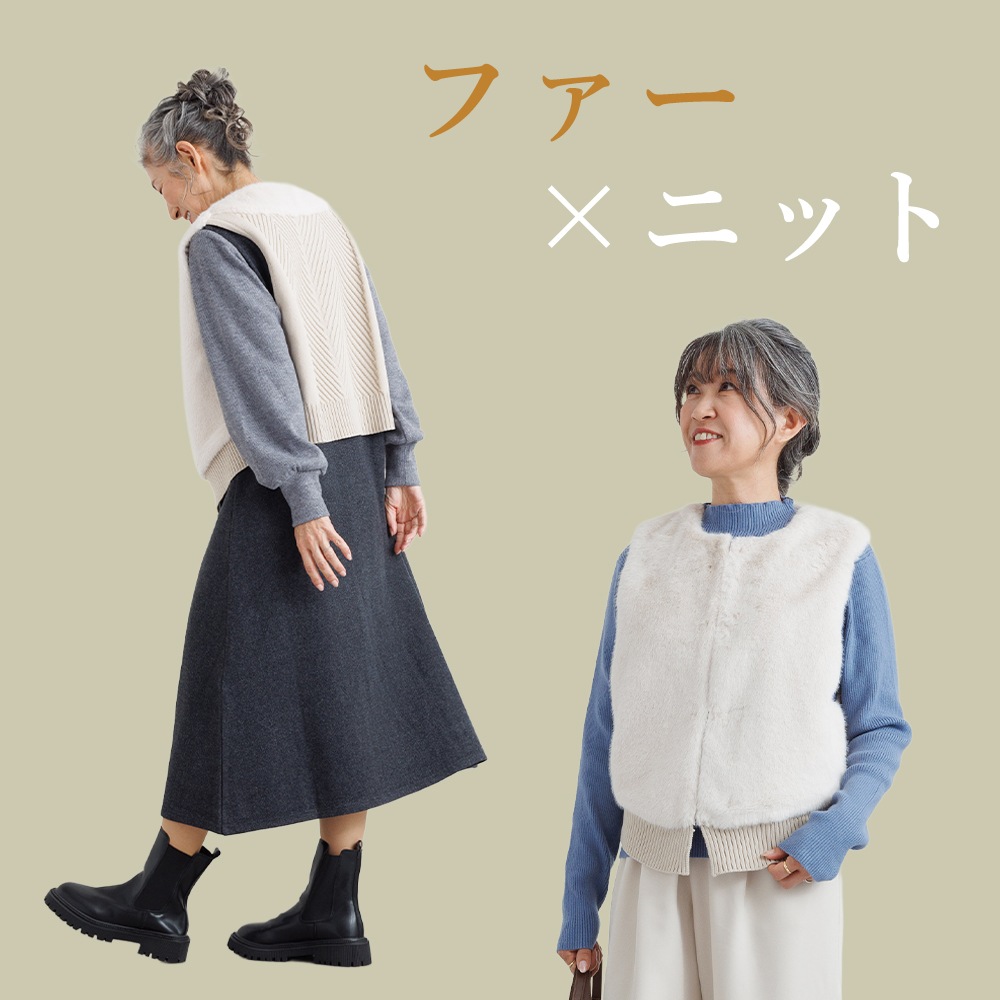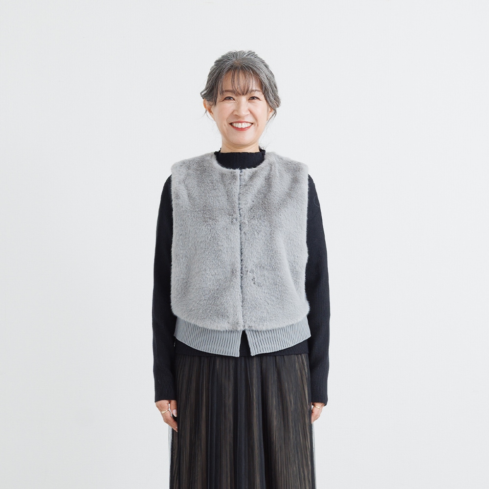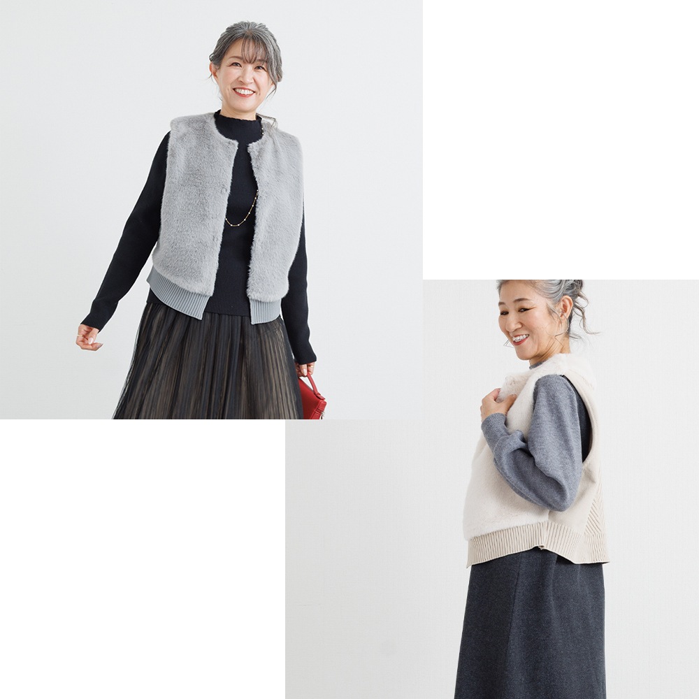 一瞬で装いを格上げする、特別なファー×ニットの異素材ベスト