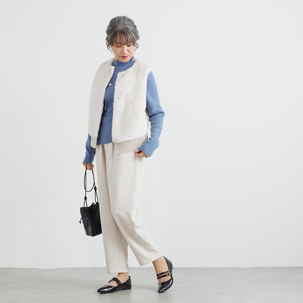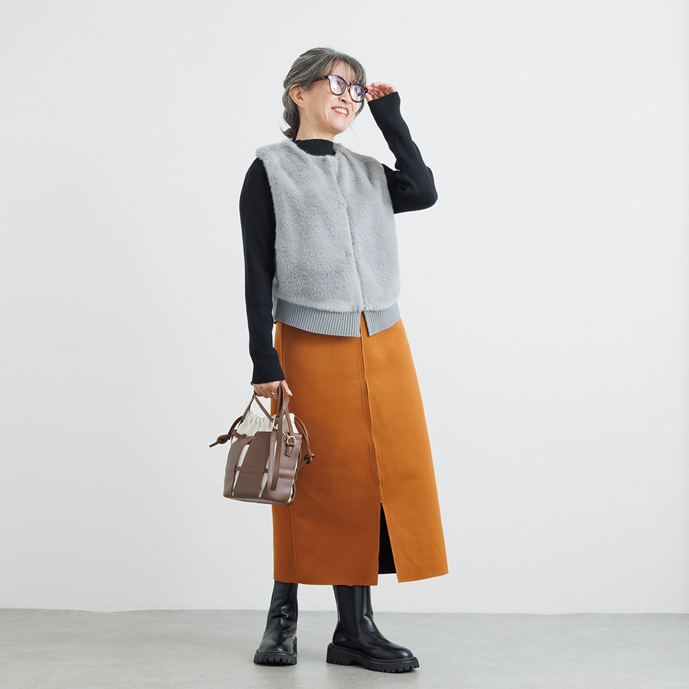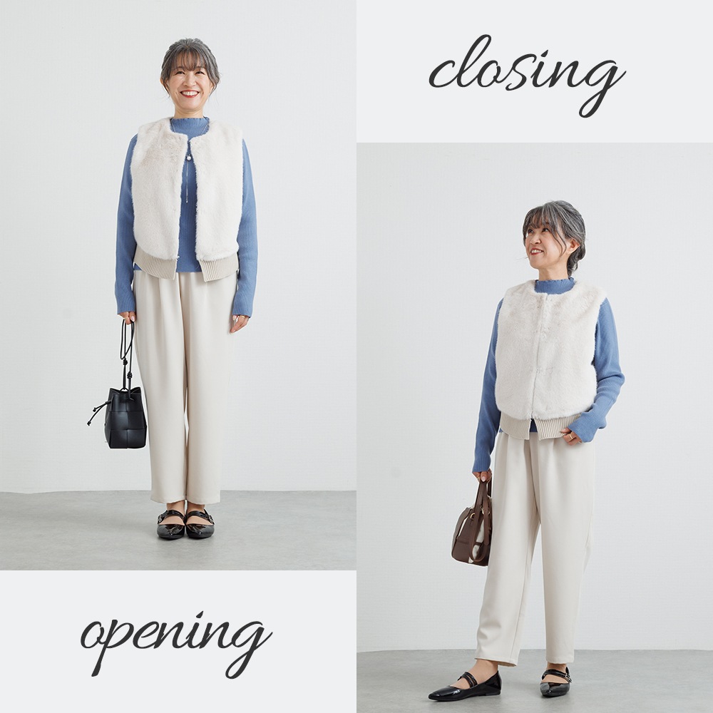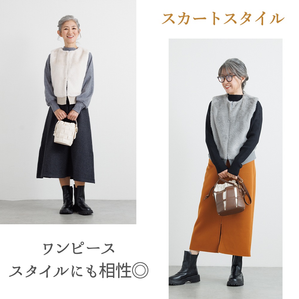 一瞬で装いを格上げする、特別なファー×ニットの異素材ベスト