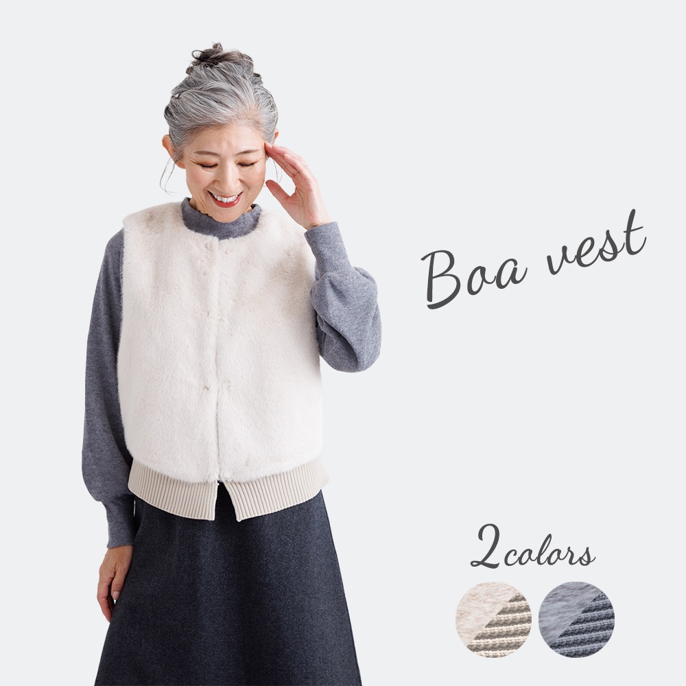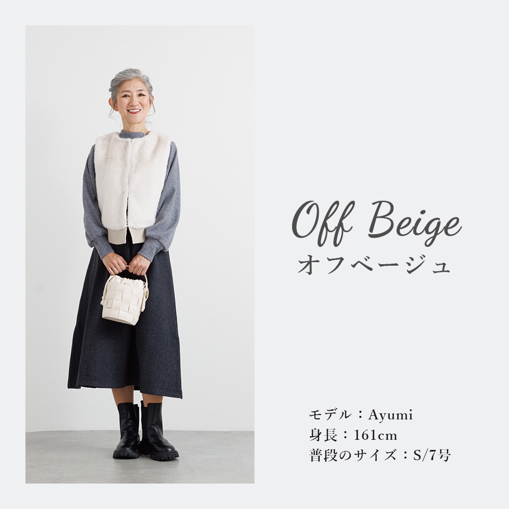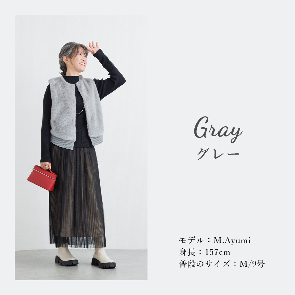 グレーを頂きました ブラックやグレーのニットに合わせて 着ています 60代のベストとして二重丸?だと思います 前身頃のファーが華やかさを、後ろ身頃の ニットがカジュアル感もだしパンツにもスカートにもとにかく合わせやすい この冬ヘビロテしています おすすめです2026/01/25 20:05