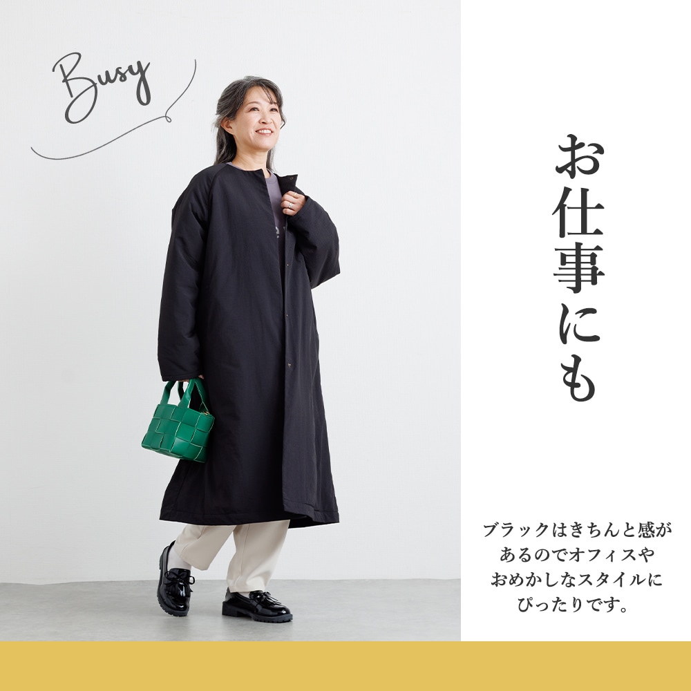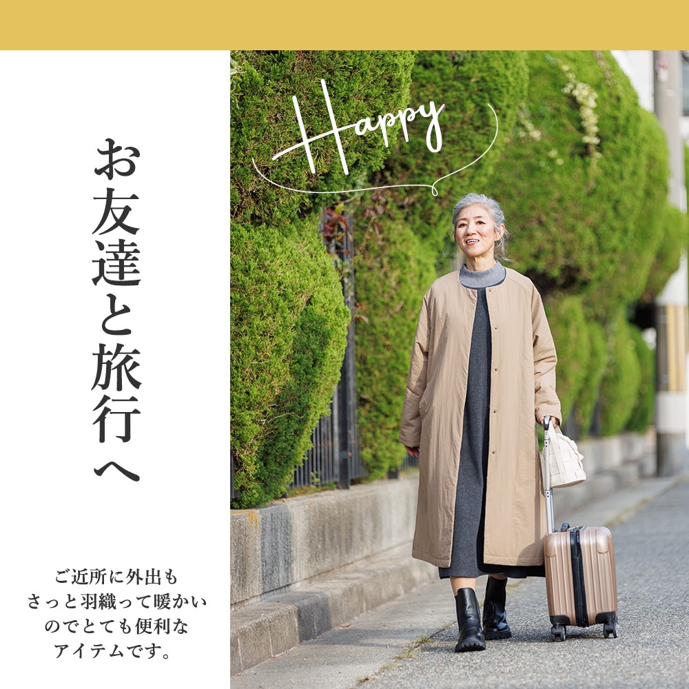 年齢を重ねるごとに、服を選ぶ基準は少しずつ変わっていきます。流行だけではなく、心地よさや軽やかさ、そしてその人らしさを大切にしたい。そんな思いに応えるように、今年のアウターは“着るたびに気分が上がる”ことをテーマにしています。素材は上質で、動くたびにラインが美しく揺れ、軽くて肩がこらない。けれど、きちんとした印象も持ち合わせている一着です。