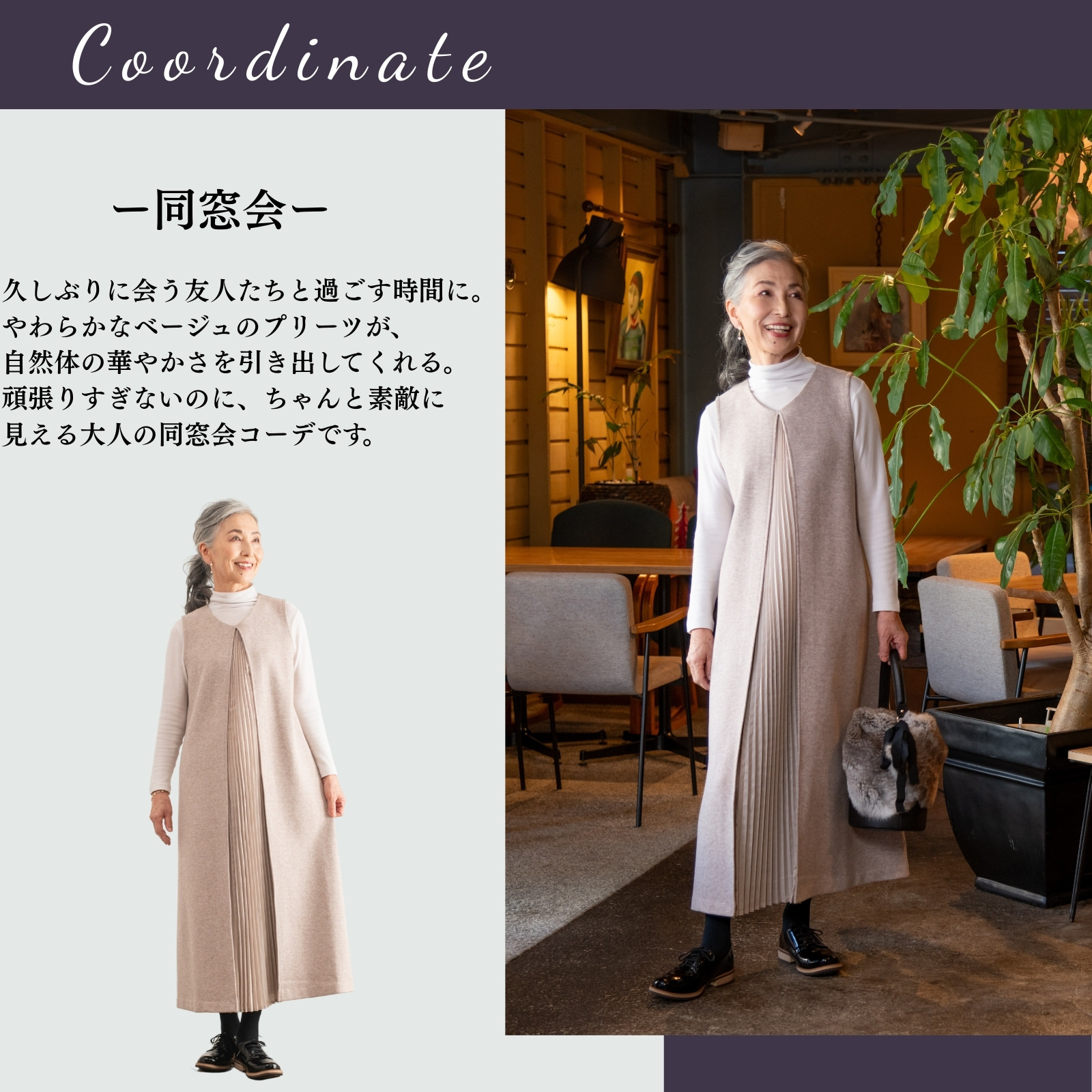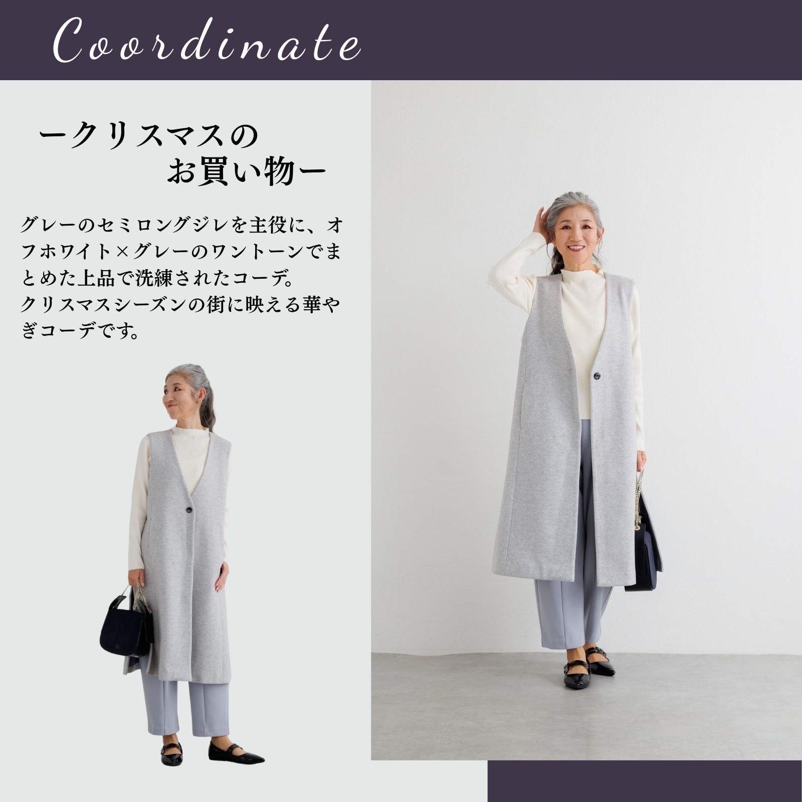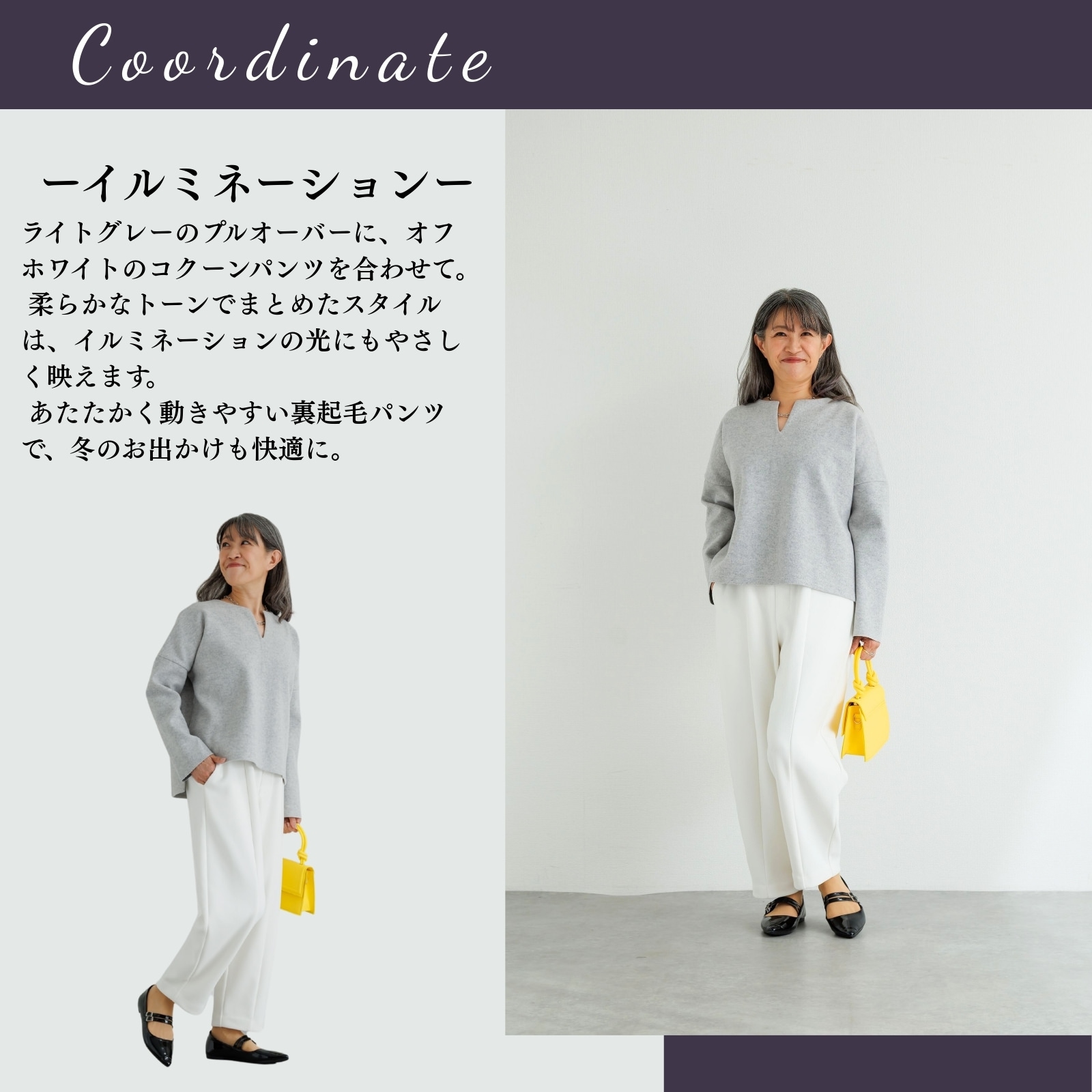 また、暖かい素材はカジュアルに見えがちで、きれいめにまとめるのが難しいことも・・・